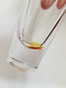 When activating MMS, it is very important that the drops of MMS and activator acid (note: HCl 4% [hydrochloric acid] or citric acid 50% is most commonly used as activator acid) turn amber color within the first 30 seconds. When we say amber, we are referring to a brown color. This can be anywhere from light to dark brown, not really pale yellow. The amber color of MMS activated drops before adding water, is much like the color of a glass amber bottle (such as is used for essential oils, various medicinal potions, or for beer bottles), when held up to the light.